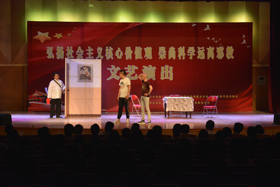 精彩的小品、歌舞、相声等节目,揭露了“法轮功”、“全能神”等邪教组织反人类、反社会、反科学的本质。本次反邪教宣传演出活动的开展,进一步提高了师生员工认识邪教、辨别邪教、拒绝邪教、反对邪教的能力,营造了“崇尚科学、远离邪教”的良好氛围。